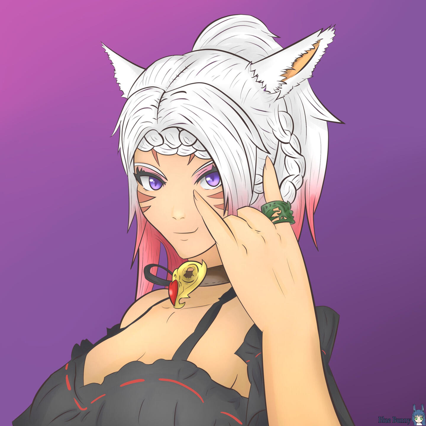 Hello everyone and welcome to my feed! My pen name is Blue Bunny but you can call me Ceyla. Why Blue Bunny? My original pen name was fr0bot because I really wanted to make some sort of cool robot mascot to go with it but I ended up having trouble creating one so I changed my name to the next thing that inspired me and what I was really known for amongst my friends and that was my blue bun Ceyla! Ceyla is my FFXIV OC and if you might've guessed she's a cute Viera so you'll probably see me drawing her a lot here and there. Thank you for taking the time to browse my carrd!